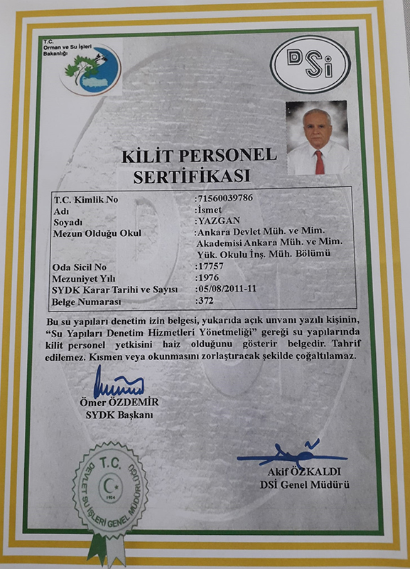 İsmet YAZGAN İnşaat Mühendisi (Kilit Personel Sertifika Sahibi.)